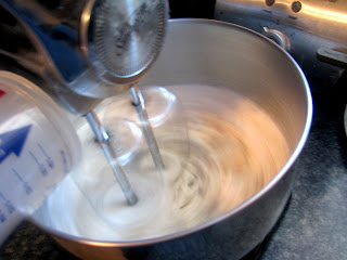 After the milk is all added in, add in the butter and mix. After that add in the eggs one by one. Only add the next one after the last one is mixed well. I did everything after the milk with hand mixing tools because it didn't seem like the hand mixer could cut handle the thick batter and I didn't want it to break. If you to this, make sure to get LOTS of air into the dough, yes, air.